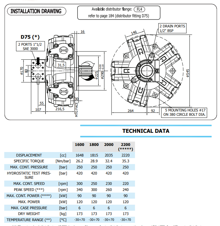 • High Displacement & Strong Torque — With a displacement of 2200 cc/rev and specific torque of 35.3 Nm/bar, the motor delivers powerful and consistent torque output.